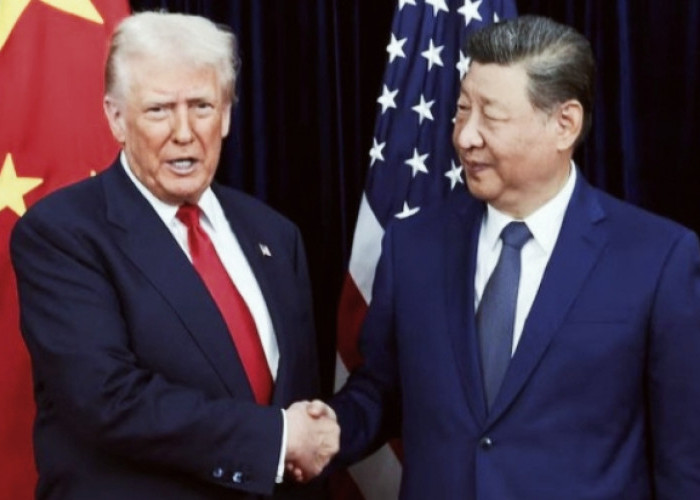 Foto:Donald Trump berjabat tangan dengan Xi Jinping saat mereka bertemu untuk pembicaraan perdagangan --